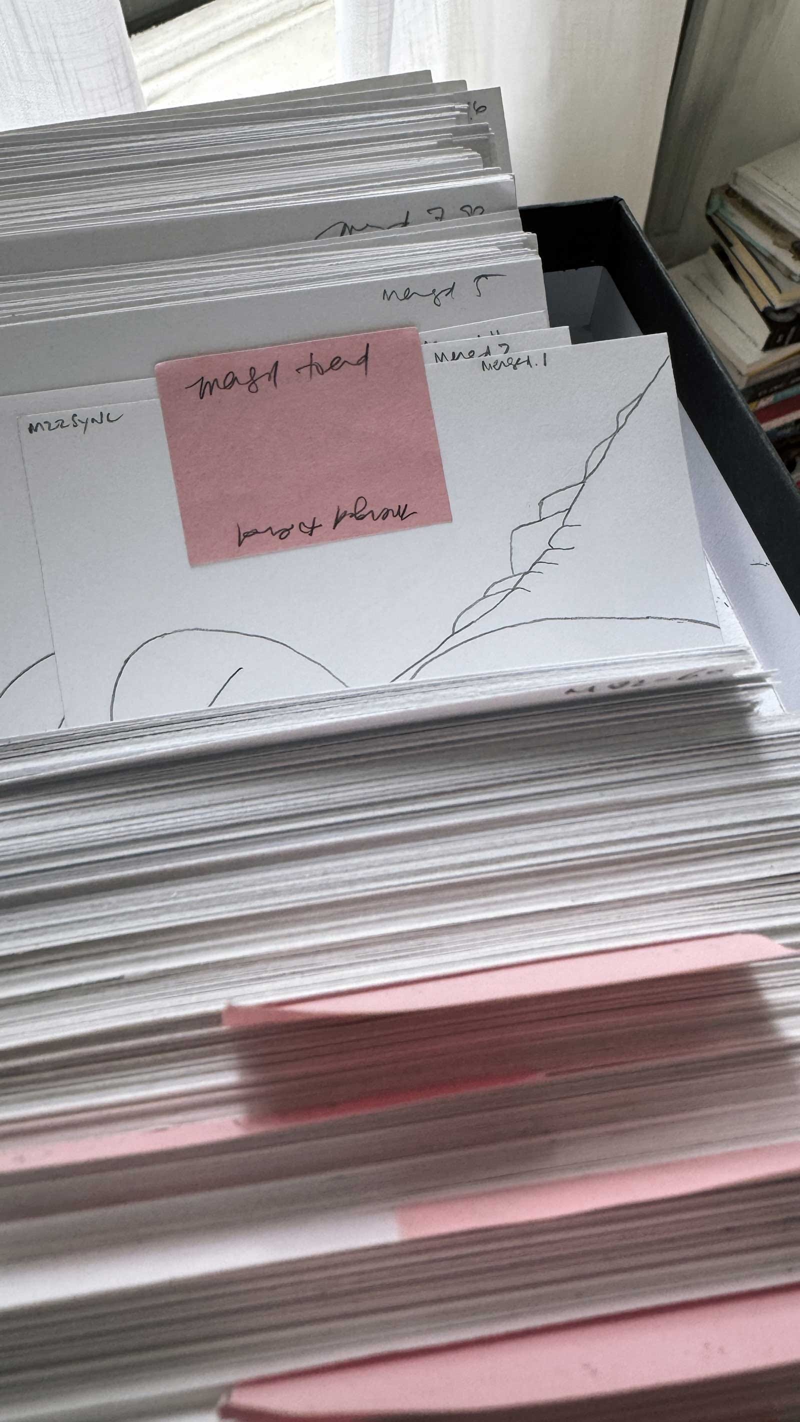 This piece, tentatively titled Manifest, explores the idea that a promise is a collaboration between the promiser and the promisee. The kinetic, sculptural aspect of the work has felt very much in vibe with the idea; its fragility a metaphor, its movement suggestive.