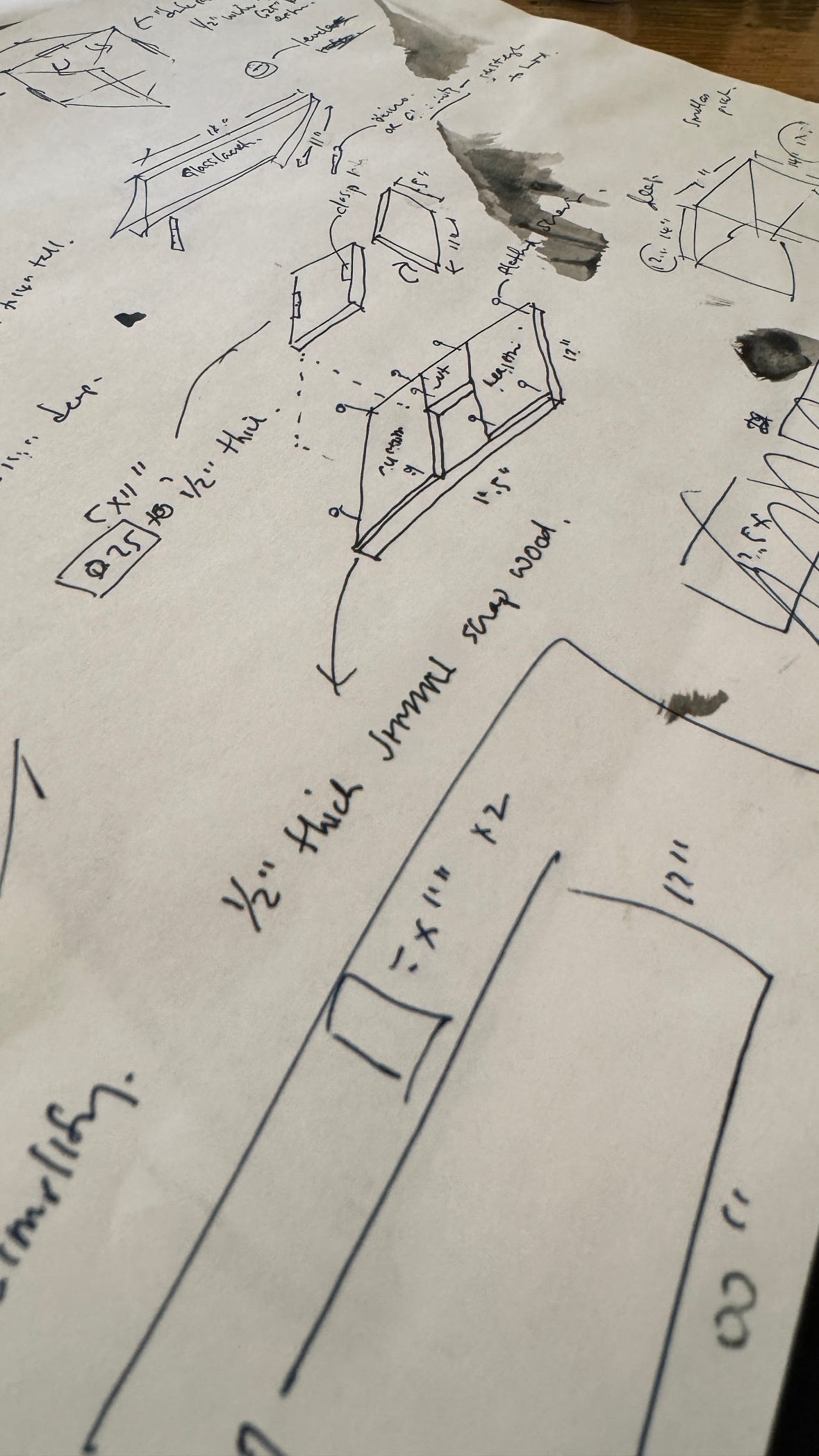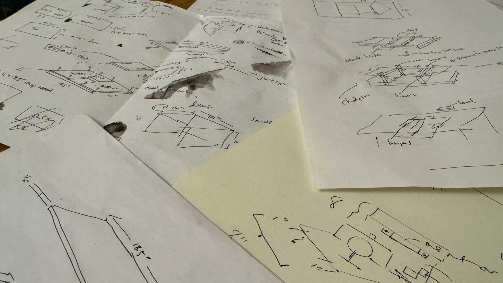I started by sketching on paper. The designs included ideas for a lightweight collapsible darkroom too, but I’ll tackle that later: