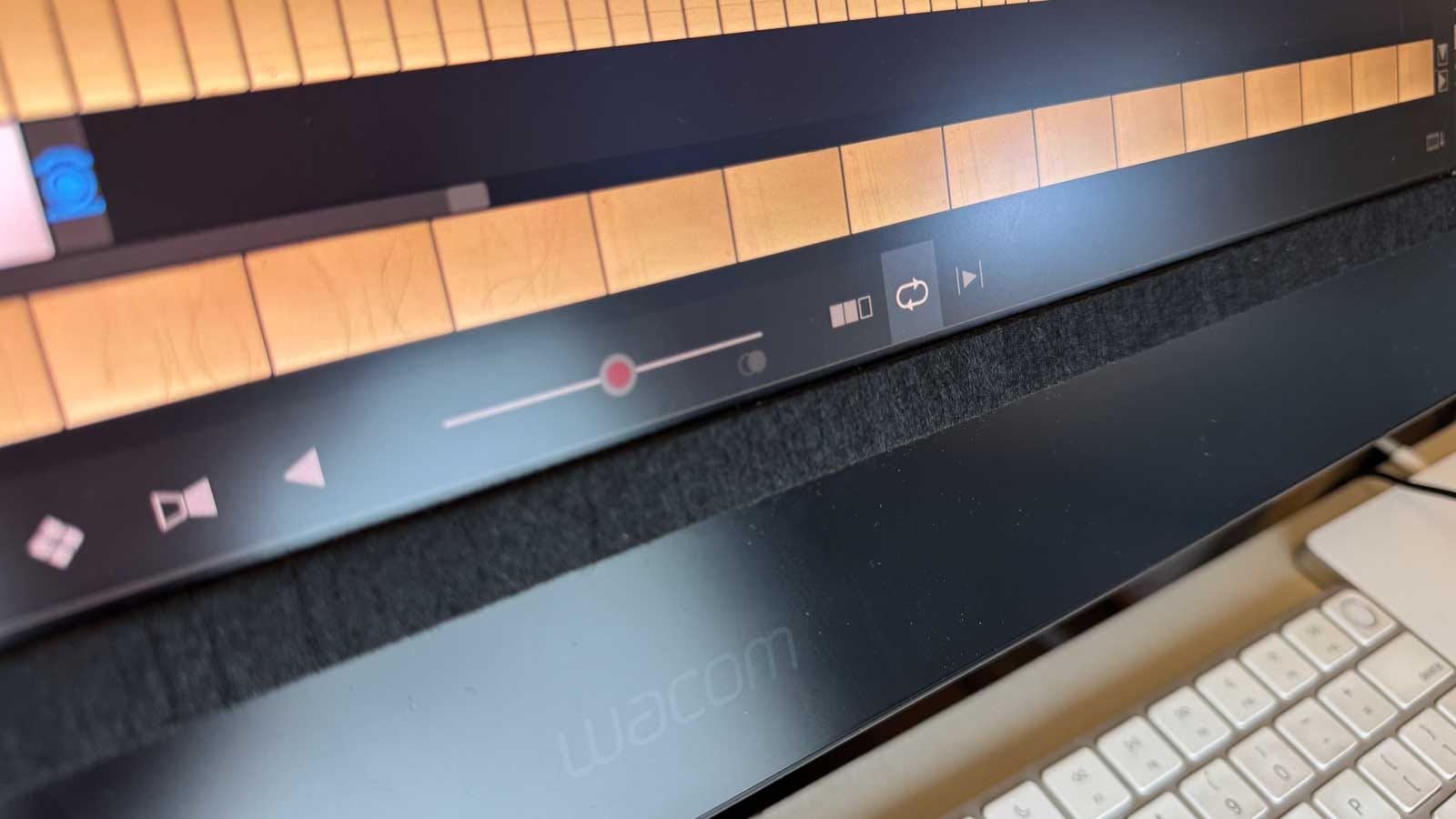 I added a removable felt strip on the bottom of the Cintiq that will serve as both ledge for paper and rest for a lightbox: