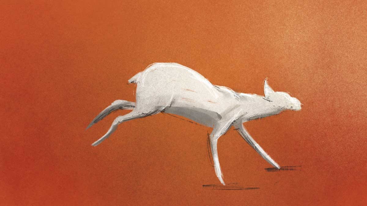 The grandmother draws back in anticipation like a stone in a sling, before launching and stretching into a hard landing where the energy gets released. The haunches overshoot upward from the force of the abrupt stop, then follow through down and back up to catch up with the rest of the body as it enters into a run.