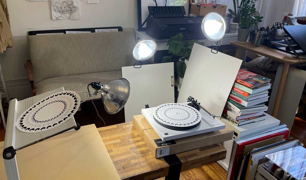 On advice from friend and seasoned photographer Julia Parris of Analog is Heavy, I got some inexpensive studio clamp lights. They’ve greatly helped mitigate shadows cast by a macro lens attachment on the iPhone, held only an inch from the turntable.