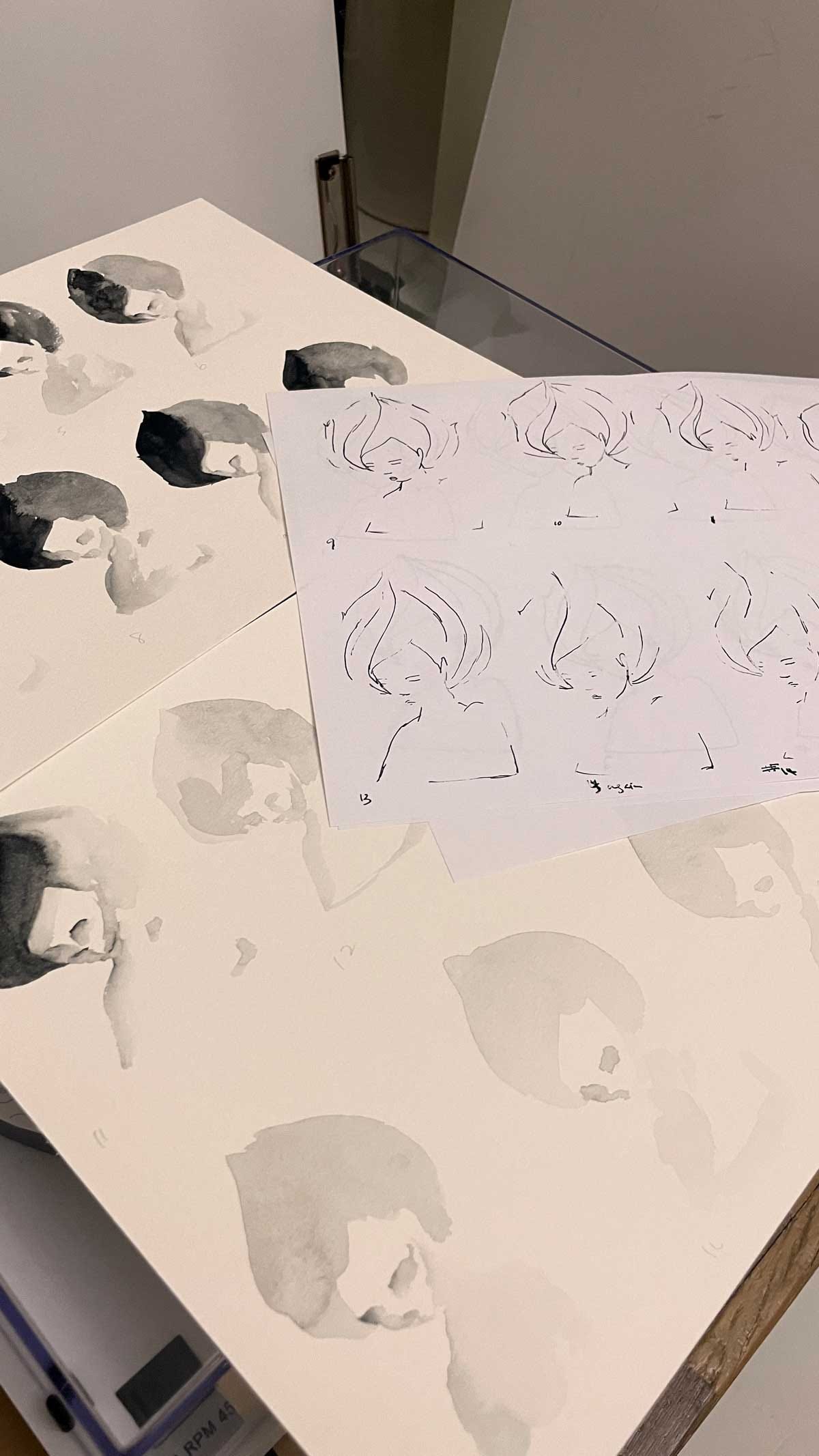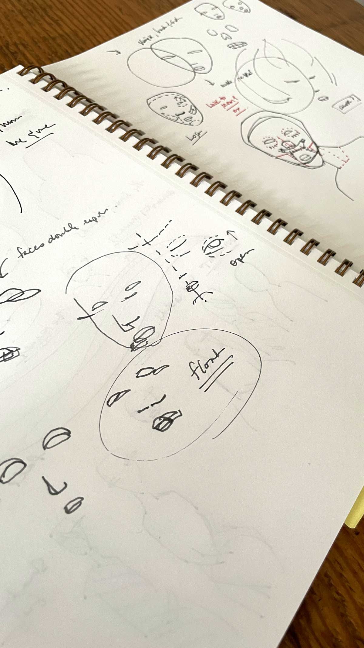 The past two weeks, I animated four concepts and several offshoots around themes of estrangement, aloneness, and the gaze, inspired by sketches from earlier this year: