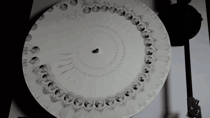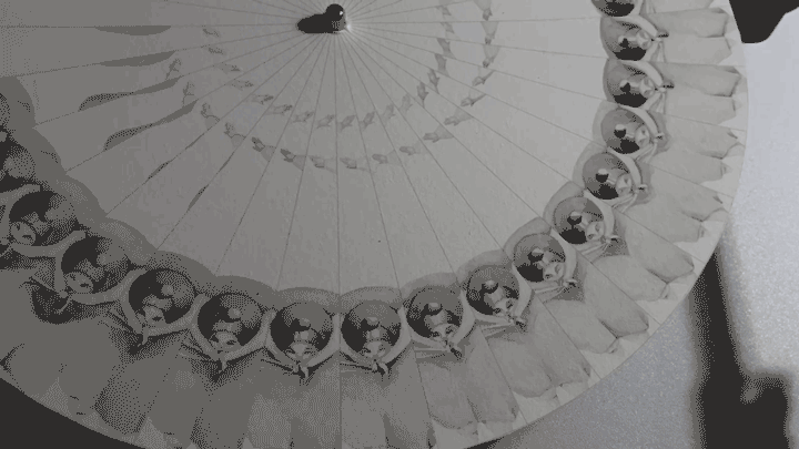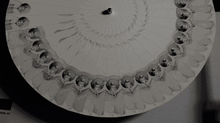 Current workflow goes something like this: translate a fragment into a short animation either on paper or in TVPaint, compose in After Effects, print 34 frames onto an 8 to 12” disc, film it while it runs on a turntable, edit the footage in Premiere Pro.