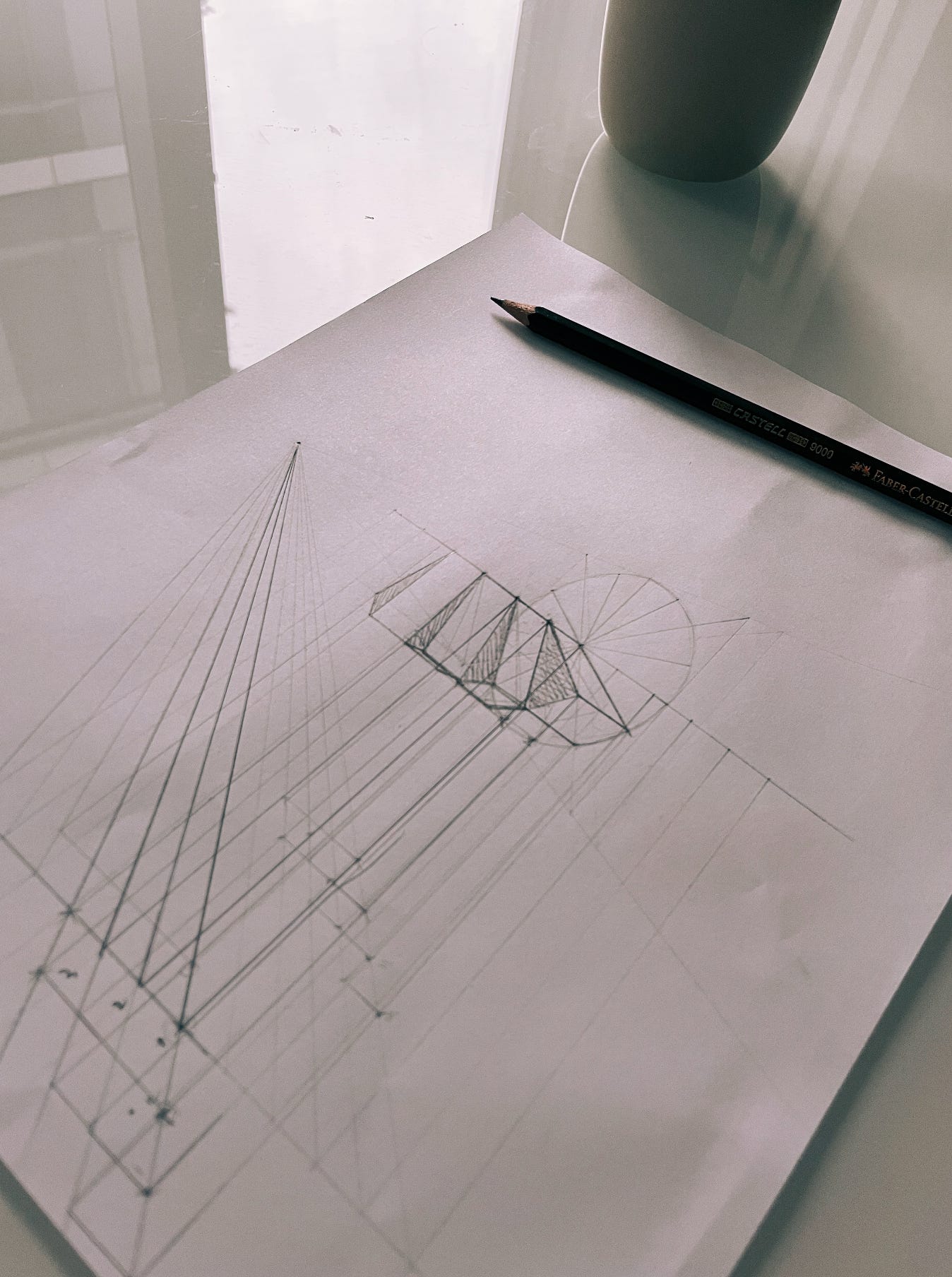 I set aside plans and turned away from patterns, demanding sufficiently novel things from my brain so that I could focus without spiraling. I found contrast and education in things like freehand copying of short film sequences, and drawing in perspective.